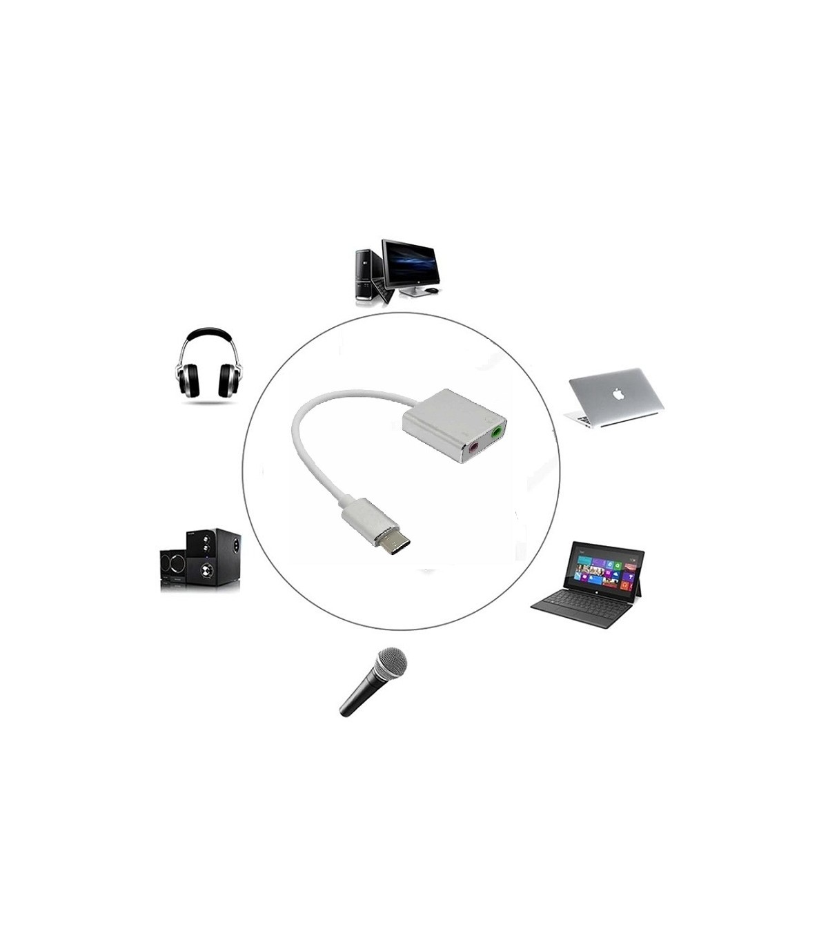 در صورتی که بخواهید هدست های دوفیش را به کامپیوتر، لپ تاپ و یا گوشی هایی که فقط پورت تایپ سی دارند متصل کنید باید از این تبدیل استفاده کنید.به این تبدیل در اصطلاح کارت صدا تایپ سی نیز گفته میشود.