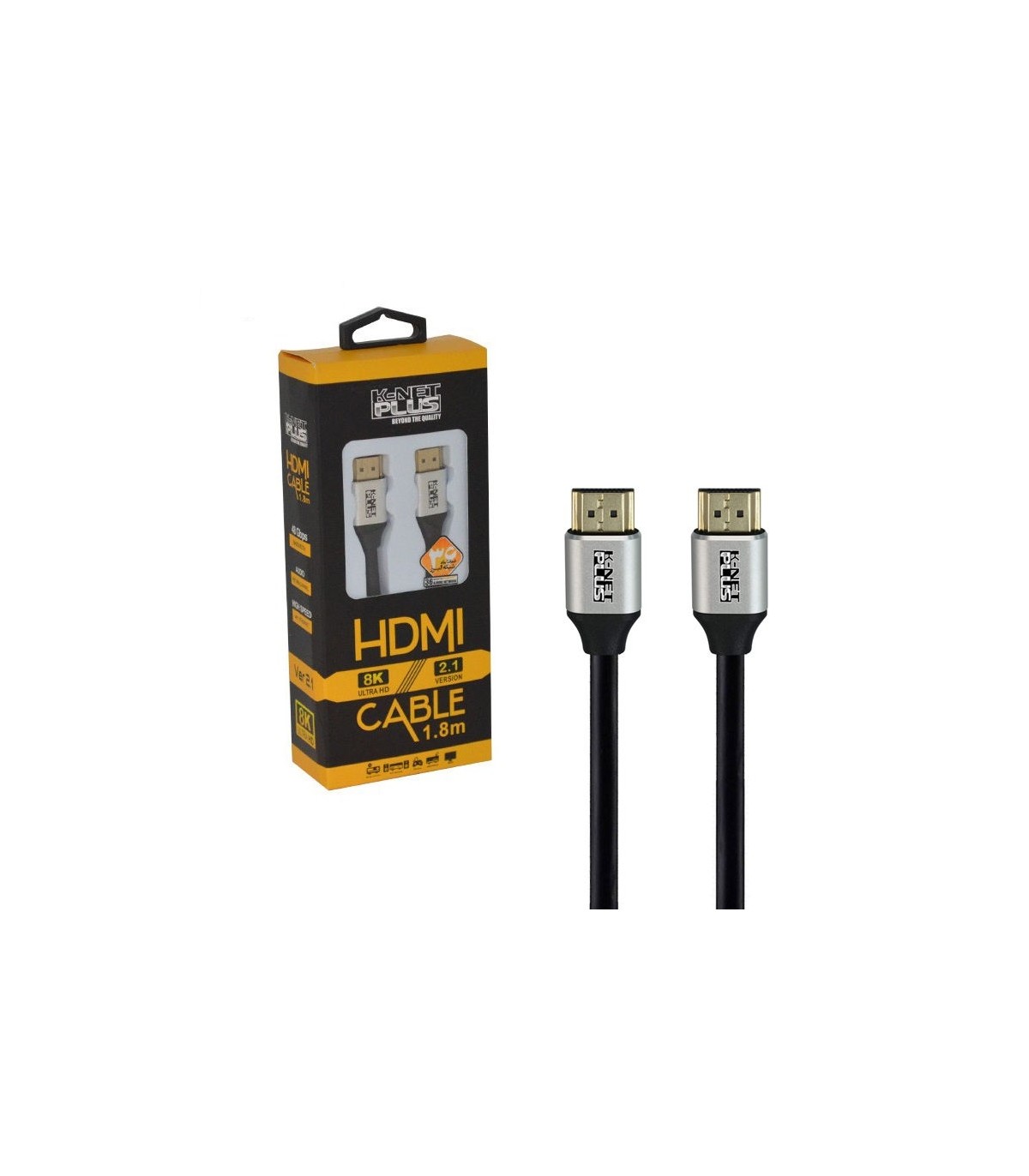 کابل HDMI 2.1 کی نت پلاس با رزلویشن 8K قابلیت انتقال سیگنال Ethernet را دارد.کابل کی نت پلاس بدون نویز تصاویر را با کیفیت 8K بر روی نمایشگر شما پخش میکند.پوشش کانکتور آن فلزی و دارای پوشش محافظ داخلی شیلد و فویل می باشد.