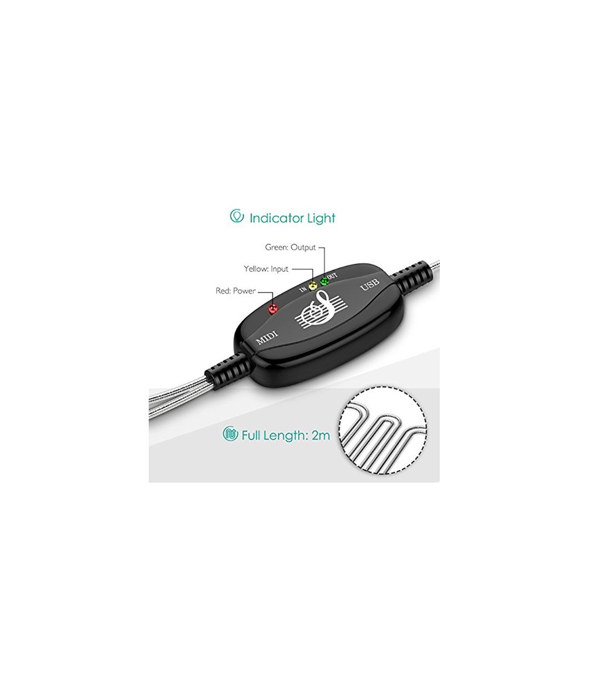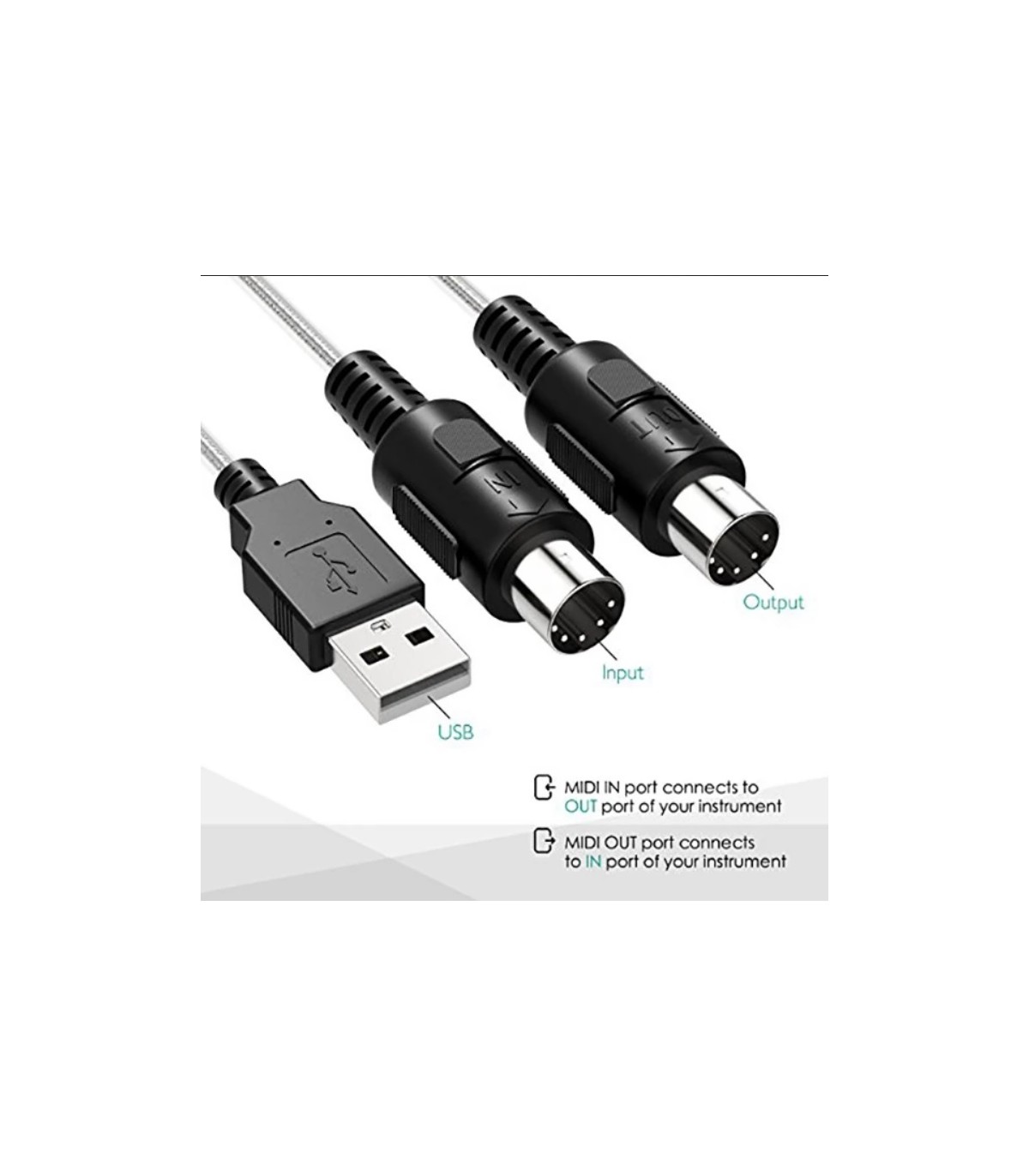 از این کابل برای اتصال انواع ارگ و کیبورد های حرفه ای به کامپیوتر یا لپ تاپ برای پروگرام کردن و یا انتقال دیتا استفاده میشود.این مدل از کابل تبدیل میدی به یو اس بی از سری با کیفیت میباشد.با اتصال این کابل به ارگ و سپس کامپیوتر میتوانید با ارگ خود آهنگسازی حرفه ای انجام دهید.در یک سمت این کابل پورت یو اس بی قرار دارد و در طرف دیگر دو عدد پورت میدی که یکی ازآنها ورودی و یکی دیگر خروجی میباشد.