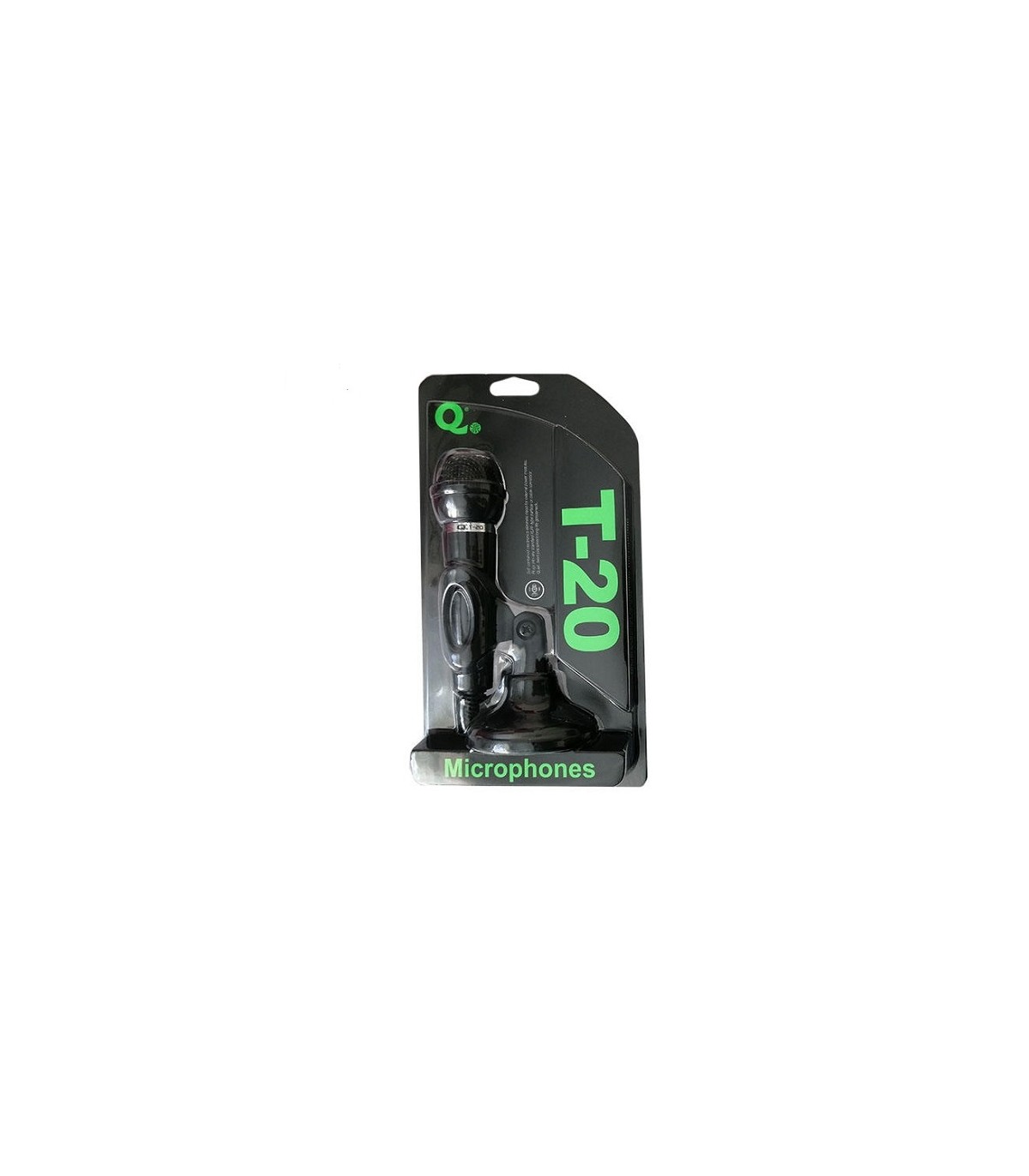 میکروفون رومیزی T20 دارای پایه نگهدارنده جهت نگهداری از میکروفون می باشد . این میکروفون جهت کنفرانس ها و سخنرانی ها استفاده می شود و توسط یک کابل AUX یا جک 3.5 میلیمتری به دستگاه های مختلف متصل می شود . این میکروفون دارای کیفیت صدا بالا می باشد.