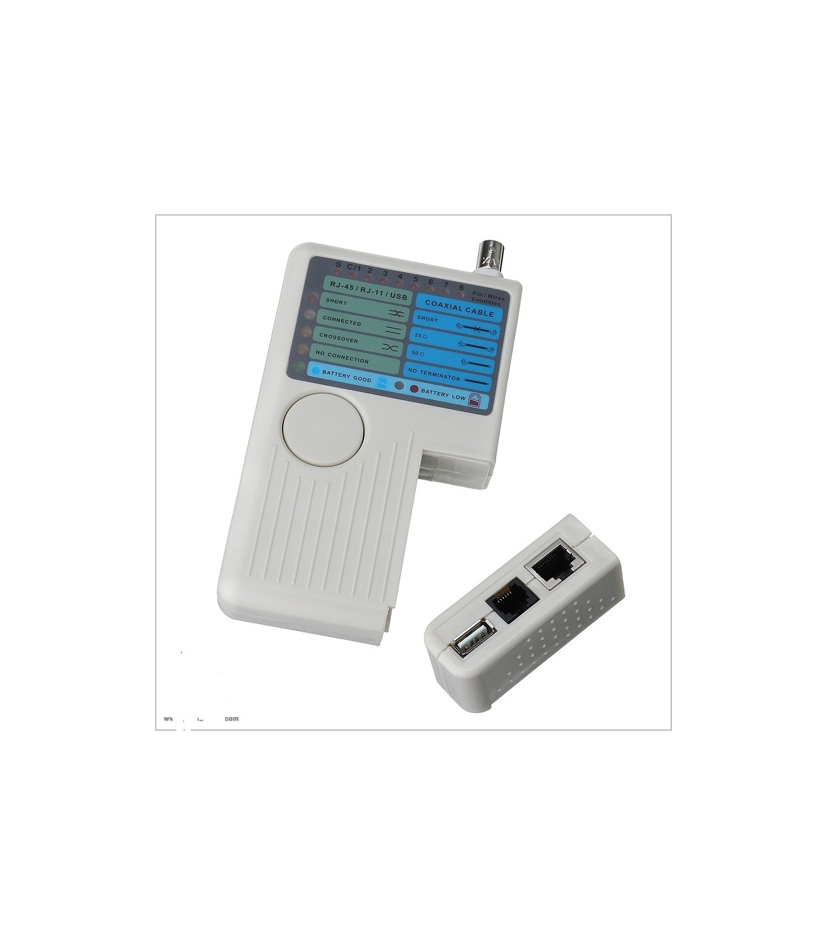 این تستر دارای یک قطعه جدا شونده می باشد که برای تست کردن کابل های شبکه با طول بلند (300 متر) می باشد.