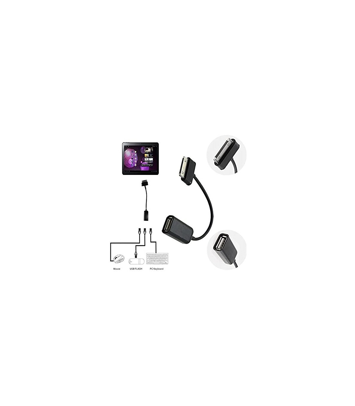 برخی گوشی ها یا تبلت های قدیمی سامسونگ برای شارژ و انتقال دیتا از پورت 30 پین استفاده میکنند.برای اتصال فلش کیبورد و موس به این نوع دستگاه ها میتوانید از این تبدیل استفاده کنید.
