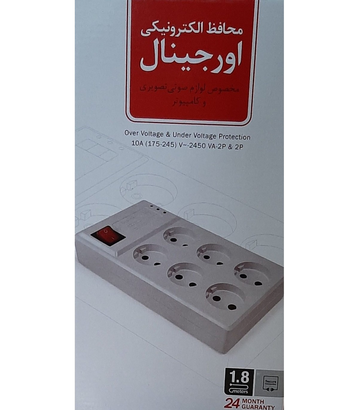 محافظ برق اورجینال دارای شش پریز و طول کابل آن 1.8 متر می باشد. زمانی که با نوسانات و قطع و وصل شدن برق روبرو هستید می توانید از این محافظ استفاده کنید. این محافظ دارای کلید قطع و وصل شدن برق را دارد و لامپ های رنگی دارد که نشان دهنده وضعیت برق می باشد.