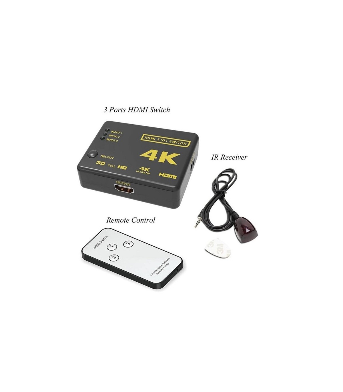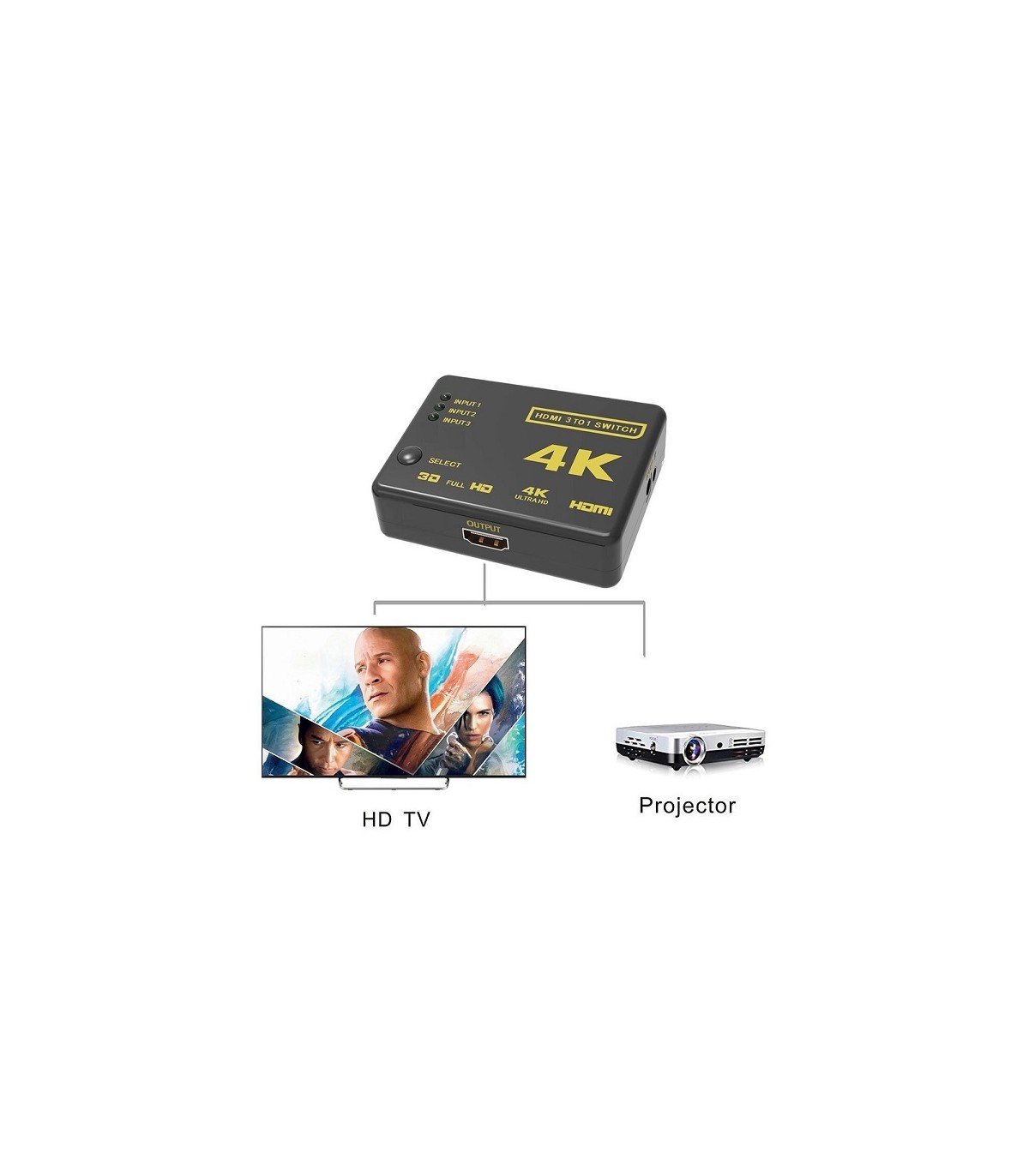 سوئیچ HDMI سه پورت مناسب برای اتصال سه دستگاه پخش کننده به یک نمایشگر می باشد. این سوئیچ همزمان سه دستگاه مانند پلی استیشن ، گیرنده دیجیتال و ایکس باکس با خروجی HDMI را به نمایشگر یا تلویزیون با ورودی پورت HDMI متصل می کند.